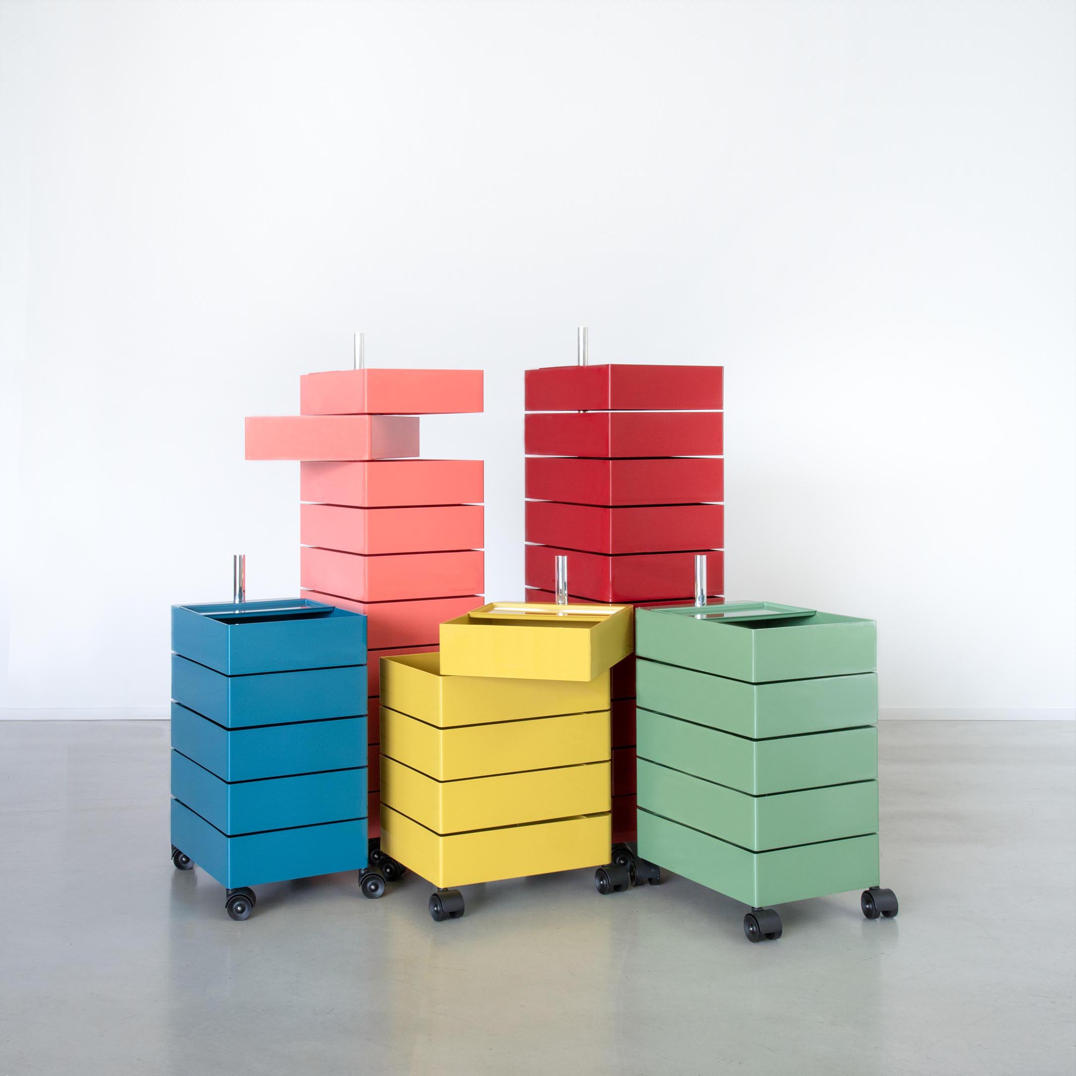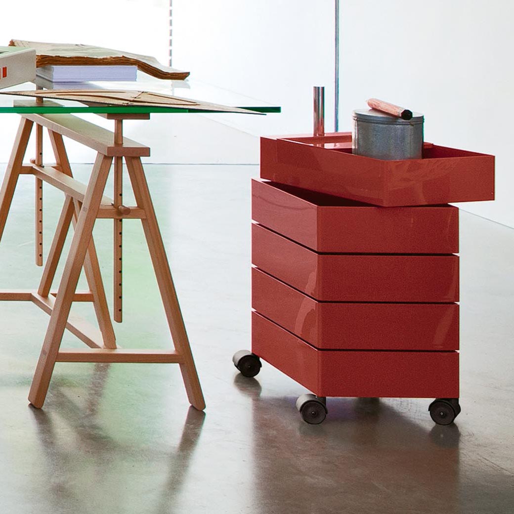 Rangement à tiroirs sur roulettes.