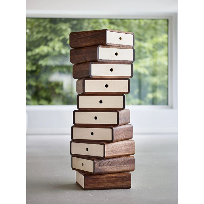 10 boîtes à tiroirs pouvant pivoter individuellement à 360 degrés.