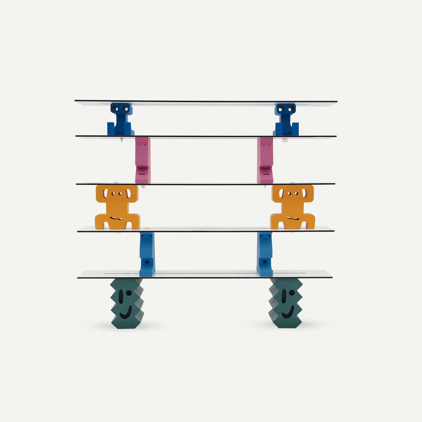 7 briques en polyéthylène. Plateaux en HPL blanc avec bord noir.