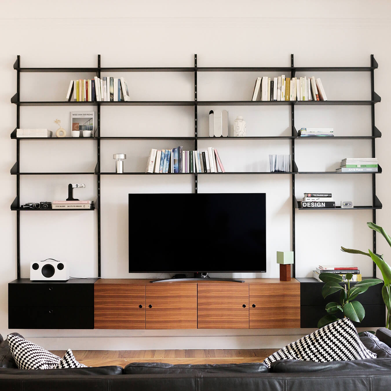 Largeur des tablettes : 40, 60, 75 et 90 cm (plateau de bois jusqu’à 180 cm)