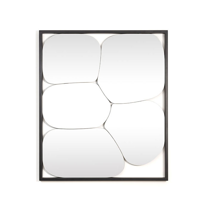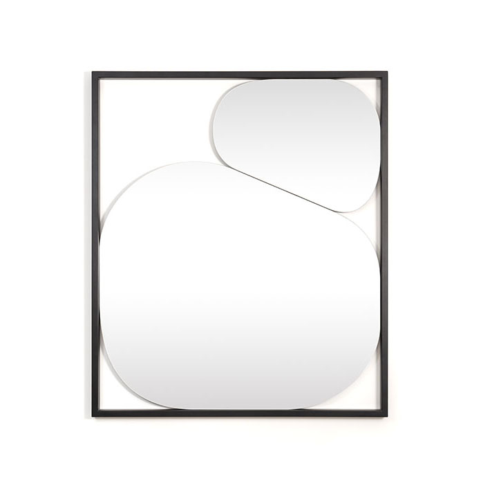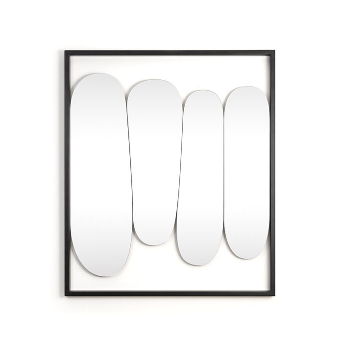 Cadre en acier extrudé verni. Miroir avec pellicule de protection sur le dos. Les miroirs peuvent être fixés sur 4 côtés.
