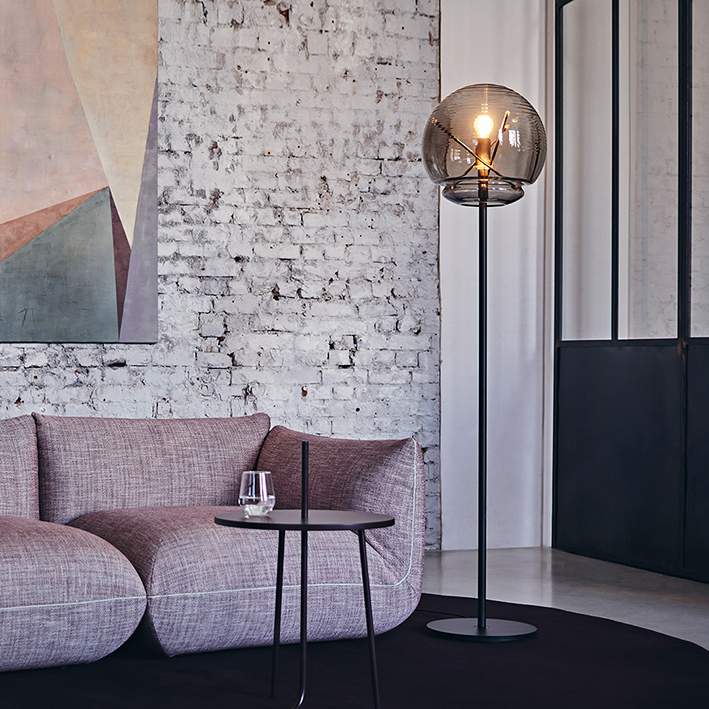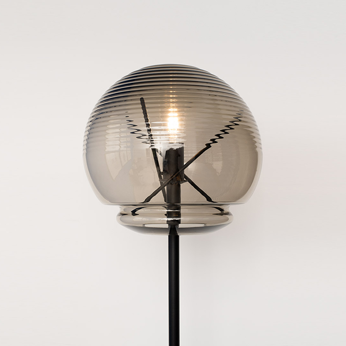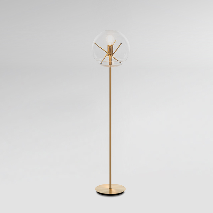 Lampadaire en verre et laiton.