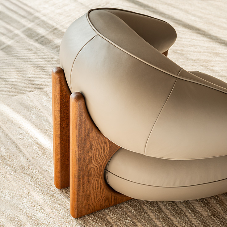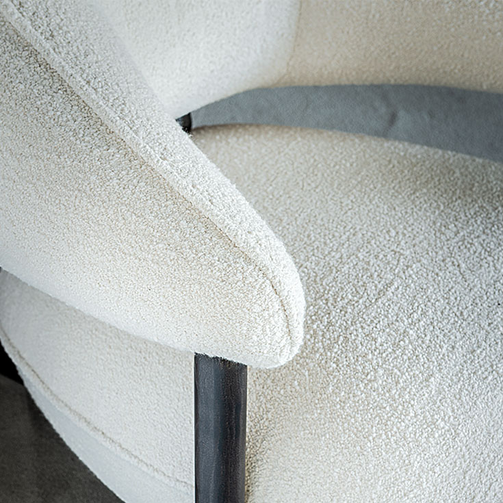 Assise et dossier rembourrés et revêtus de tissu, micro nubuck ou cuir.