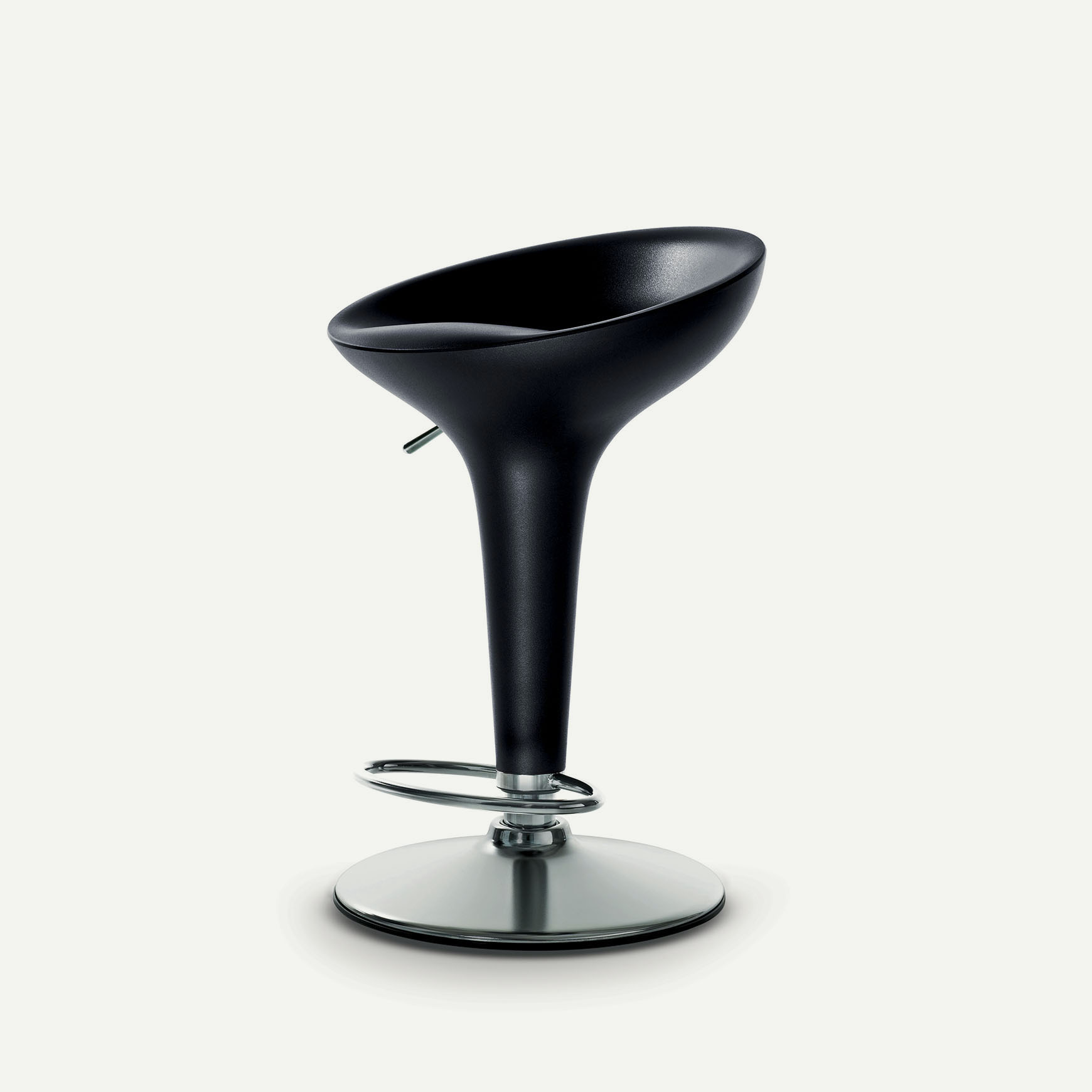 Tabouret pivotant réglable en hauteur avec piston à gaz.